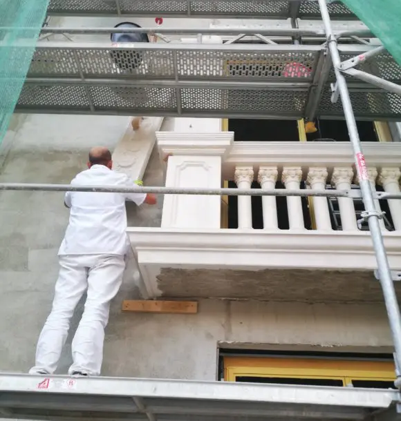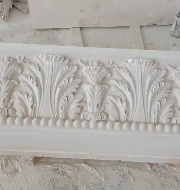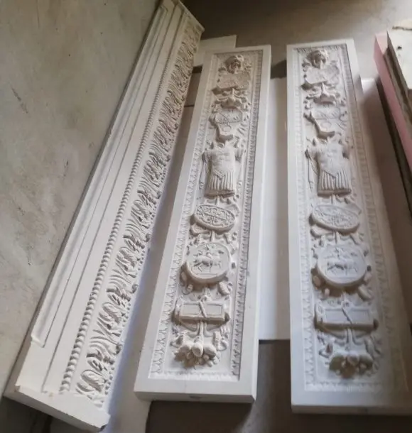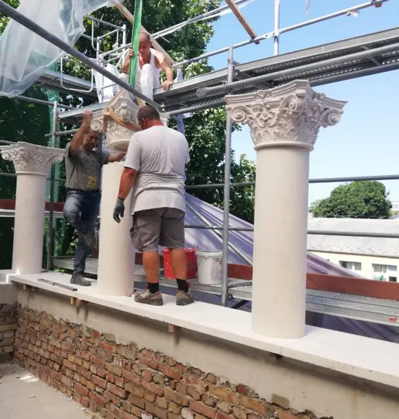 F. participates in the project of general restoration of the villa’s architecture. NEW ART by the maximum share. The stone parts are made of marble. In addition to many years of experience with stone processing procedures, the company has a 3D design studio, it provides the entire process from scanning the originals, their digitization to the production itself. The CNC production process allows for an absolutely precise copy of the originals, all units and details, such as portals, columns, profiled cornices, window frames, plinths, balustrades, friezes, which carry an overflowing wealth of shapes and decorative reliefs in the Renaissance style. The products are manually finalized. In terms of the reconstruction project, the company also carries out the actual assembly and incorporation of all the stone components of the architecture.